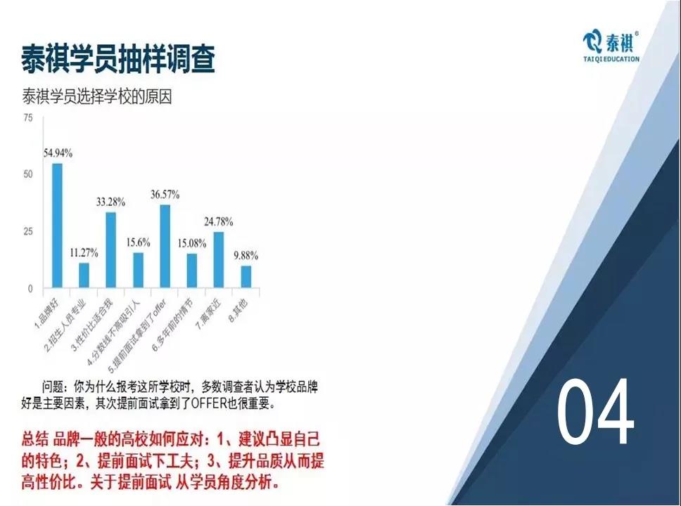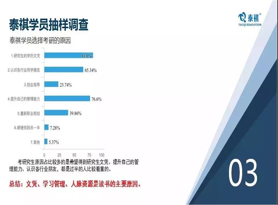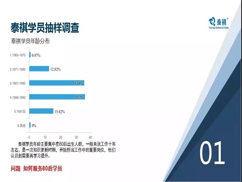 泰祺教育专注管理类专业培训17年。泰祺在全国40多个城市开设直营分校,以提供MBA/EMBA等管理类硕士联考辅导为主要业务。此外,泰祺也是首家在考研培训领域挂牌上市的企业。