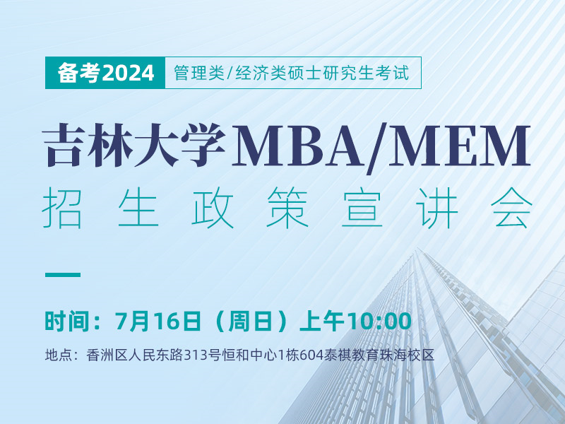 吉林大学MBA&MEM招生宣讲会-珠海7月16日