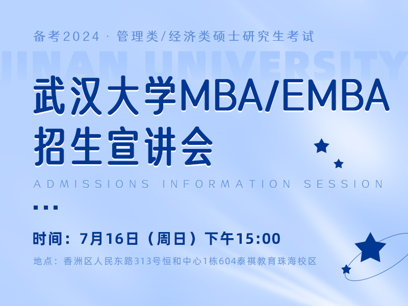 武汉大学MBA /EMBA招生宣讲会-珠海7月16日