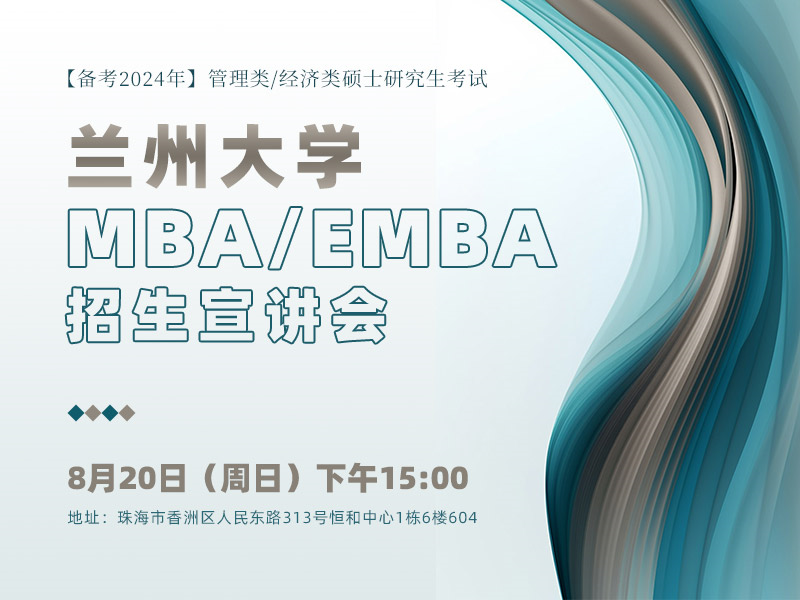 兰州大学MBA/EMBA招生宣讲会-珠海8月20号
